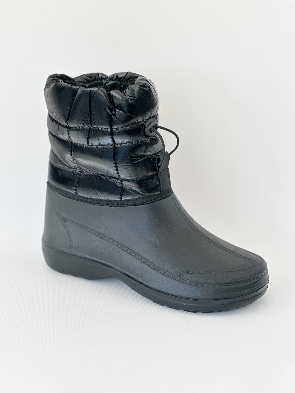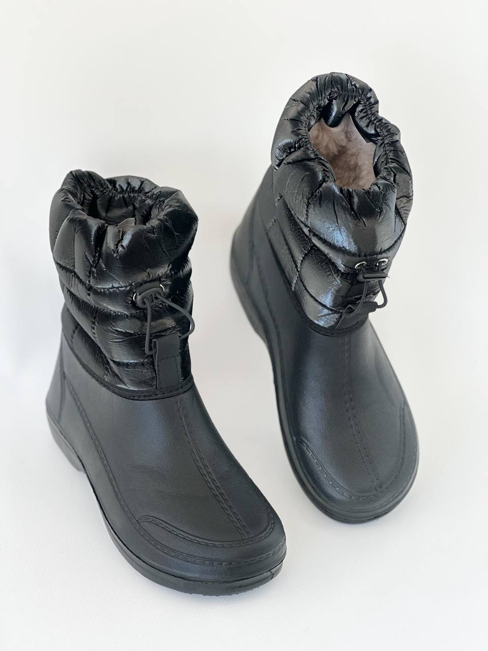 Універсальний варіант – від холоду і сльоти Похмура осінь … Мокра весна … Сніжна зима … У черевиках занадто сиро, а в гумових чоботах ноги просто мерзнуть. Вам знову не в чому ходити? Не турбуйтеся: якраз для такої примхливої погоди і придумані демісезонні жіночі комбіновані чоботи – “Тайга”! Чому їх варто полюбити? · По-перше, верх чобота з щільного текстилю – не тільки оберігає ноги від холоду, але і відмінно виглядає в поєднанні з зимовим одягом. · По-друге, нижня частина, яка закриває стопу, зроблена литним методом- з дуже легкого, пружного і водонепроникного сучасного матеріалу ЕВА – і щільно пришита до верхньої частини чобота. · А за додаткову м’якість і тепло відповідає підкладка зі штучного хутра. · Жіночі чоботи “Тайга” – взуття для тих, хто любить тримати ноги в теплі і сухості!