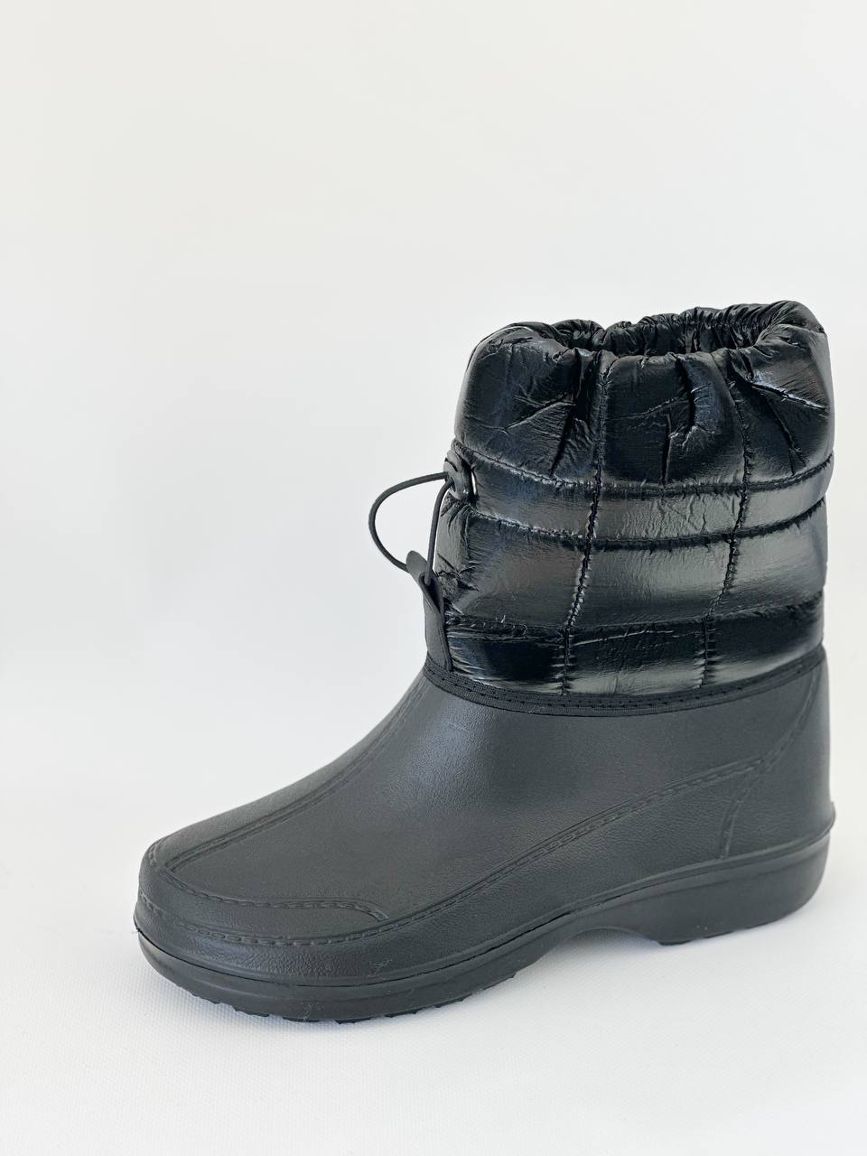 ЕВА – чудовий матеріал для різних погодних умов, тому що володіє наступними характеристиками: · повністю вологонепроникний · морозостійкий · зберігає тепло · надзвичайна легкість – в 4 рази легше, ніж ПВХ рефлена підошва допоможе почувати себе упевнено у будь якиу ожеледь · еластичність, пружність, гнучкість – в будь-яку погоду · прекрасна амортизація · висока зносостійкість · гігієнічність – стійкість до дії бактерій і грибків